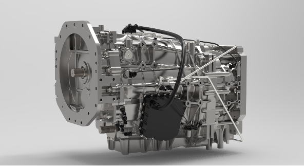 采用机械、液压功率分流技术,其中机械传动具有4个驱段,整箱变速比范围达0.4-200,适配整车从低速爬行到高速的绝大部分工况;